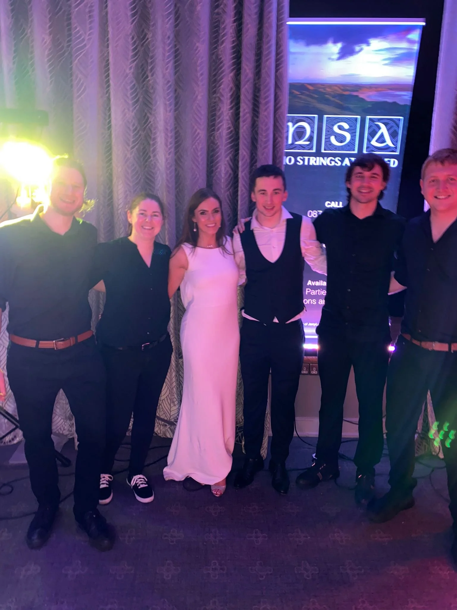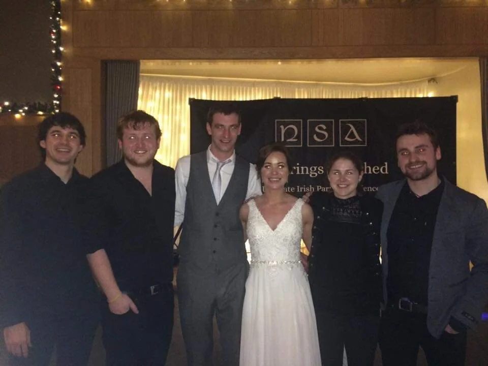 “NSA did an amazing set at my Dingle wedding in July. They were professional from the moment I booked them and were willing to learn new songs for the set, which fit in well. My friends and family loved them! The floor was packed throughout with everyone singing along. Perfect for an international crowd, and the Irish dancing was a great bonus too.”